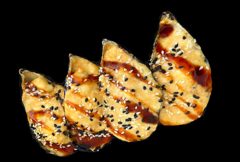 Состав: сыр "Моцарелла", сметана, чеснок, соус "Терияки", кунжут.