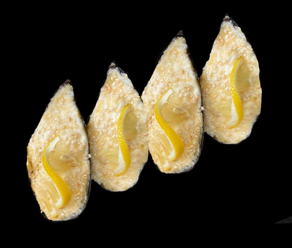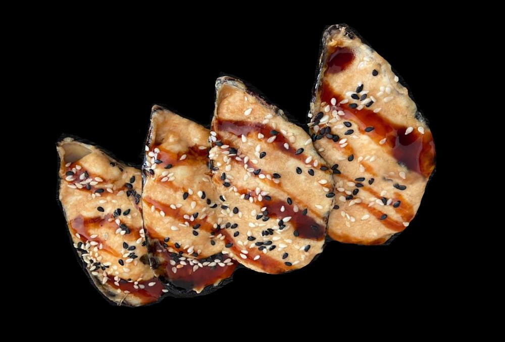 Состав: сыр "Моцарелла", икра, майонез, соус "Унаги", кунжут.
